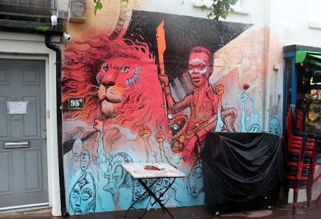 Unfortunately, the weather wasn't great. So some of the colours are not as vivid as I would have hoped. Eventually the rain was so heavy I had to repair to the nearest Spoons to dry out (externally). It was packed. Most of the murals in Brighton are close together, especially along Trafalgar Lane where there is a whole gallery (which changes regularly) ......